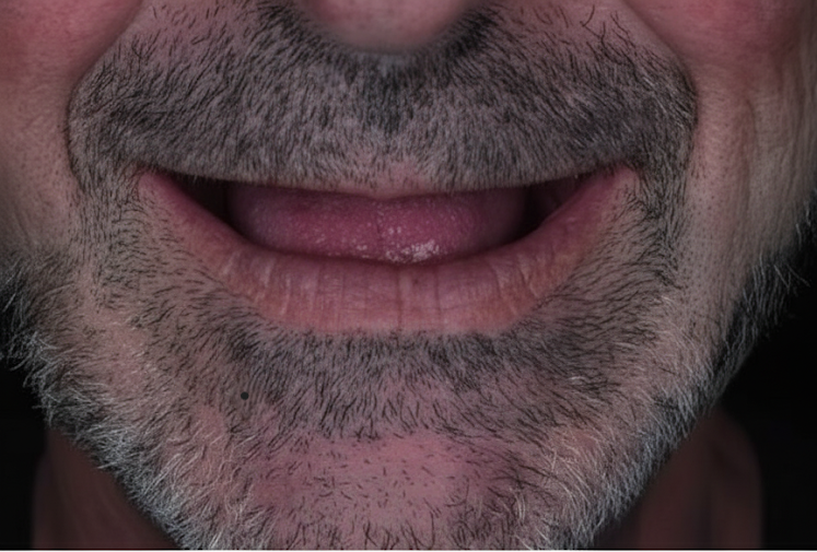 Пацієнт 56 років звернувся з проблемою тотальної адентії. Раніше (приблизно 1 рік) він пройшов процедуру видалення зруйнованих зубів і звернувся до стоматолога-ортопеда для виготовлення знімного нейлонового протеза. Спочатку якість протезування його задовольнила, але з часом протез почав заважати та спричиняти дискомфорт під час вживання їжі та спілкування. Через це чоловік почувався невпевнено та пригнічено.