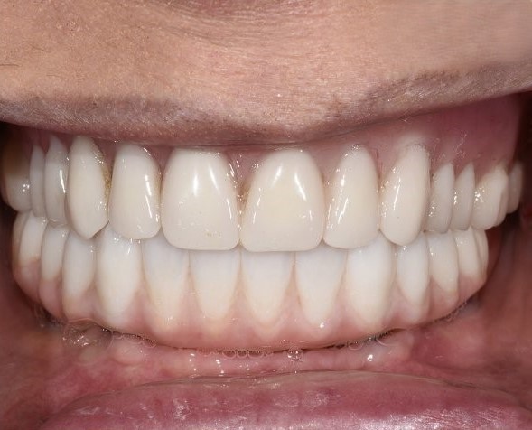 За 7 місяців пацієнт прийшов у клініку повторно, щоб встановити постійний протез на 4 імплантах. Після цього він зміг оцінити фінальний результат, який дала комбінована реабілітація із відновленням зубів верхньої та нижньої щелепи за сучасними методами.