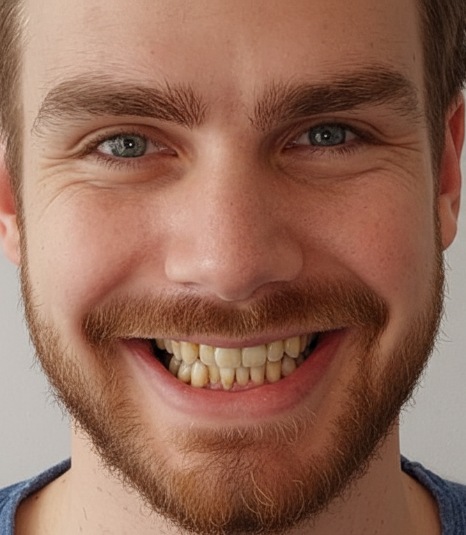 Пацієнт 29 років звернувся зі скаргою на кривизну зубного ряду, прискорене стирання та розтріскування емалі окремих одиниць, причиною чого виявилися дефекти роботи СНЩС. Основний запит був на захист зубів від подальшого руйнування, підвищення естетики усмішки й усунення дискомфорту під час пережовування їжі.