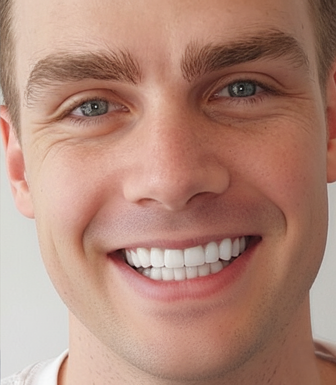 За кілька днів коронки E-max були готові, тому пацієнт прийшов для встановлення та контролю прикусу. Після цього чоловік зміг оцінити фінальний результат відновлення зубного ряду та прикусу. Зубний ряд став рівним, прикус стабілізувався, а також зник дискомфорт під час жування. Усмішка почала виглядати гармонійно та природно.